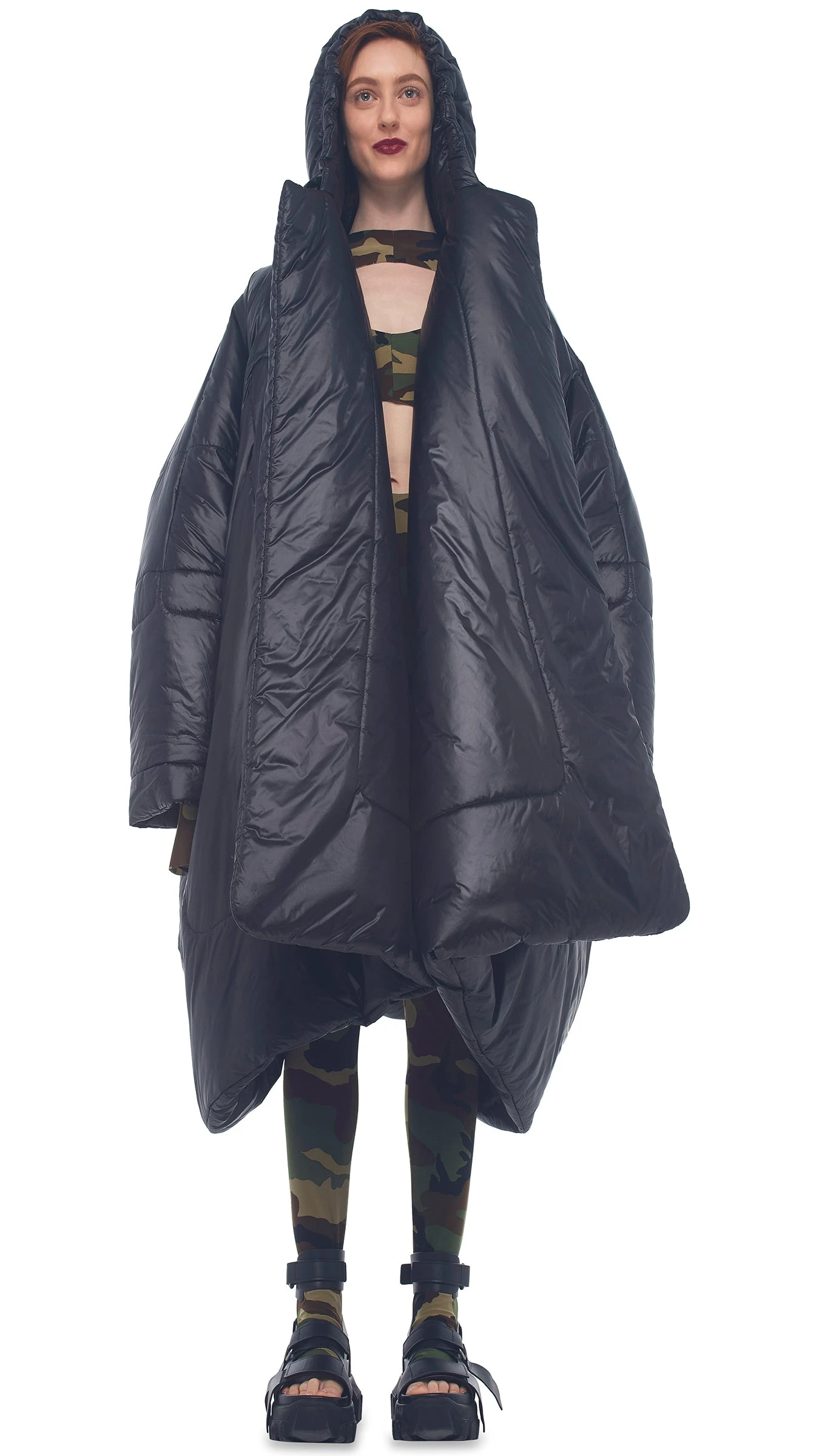 The Sleeping Bag Coat is one of the classic icons of the Norma Kamali brand. Originally designed in 1973, the Sleeping Bag Coat created a frenzy among fashion-hungry style seekers. It remains as relevant and chic today as it was back then. Using the NASA method for warmth, each coat is actually two coats sewn together with air pockets in between. Heat from the body exchanges with the cold from outside.