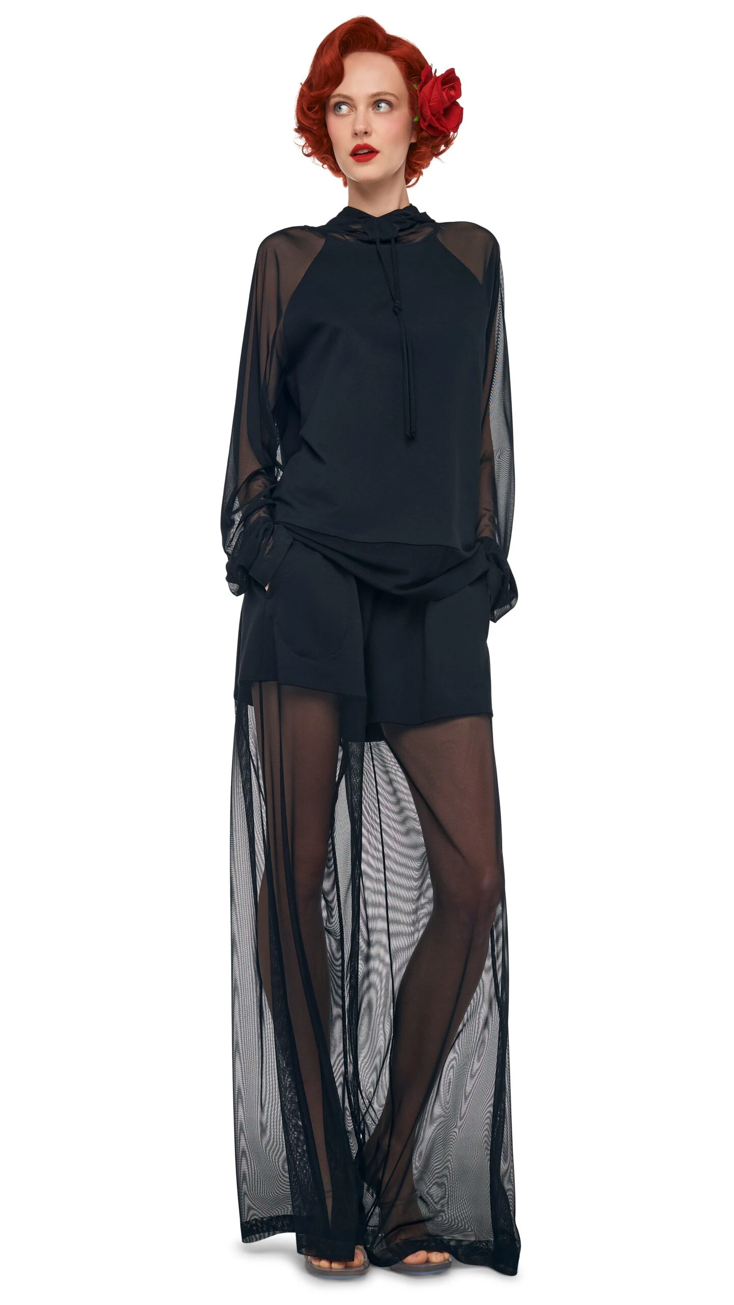 - Semi-sheer sleeves